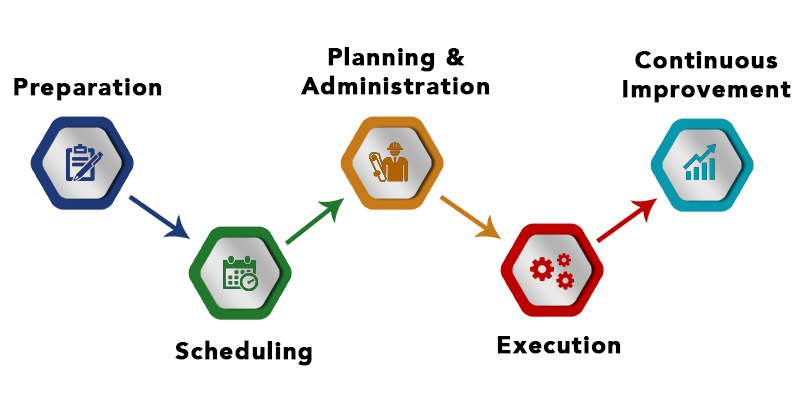 - Major maintenance activities like management of change activities like overhauls and upgrades, capacity additions, energy management projects, shut down maintenance etc. can also be planned and scheduled.
